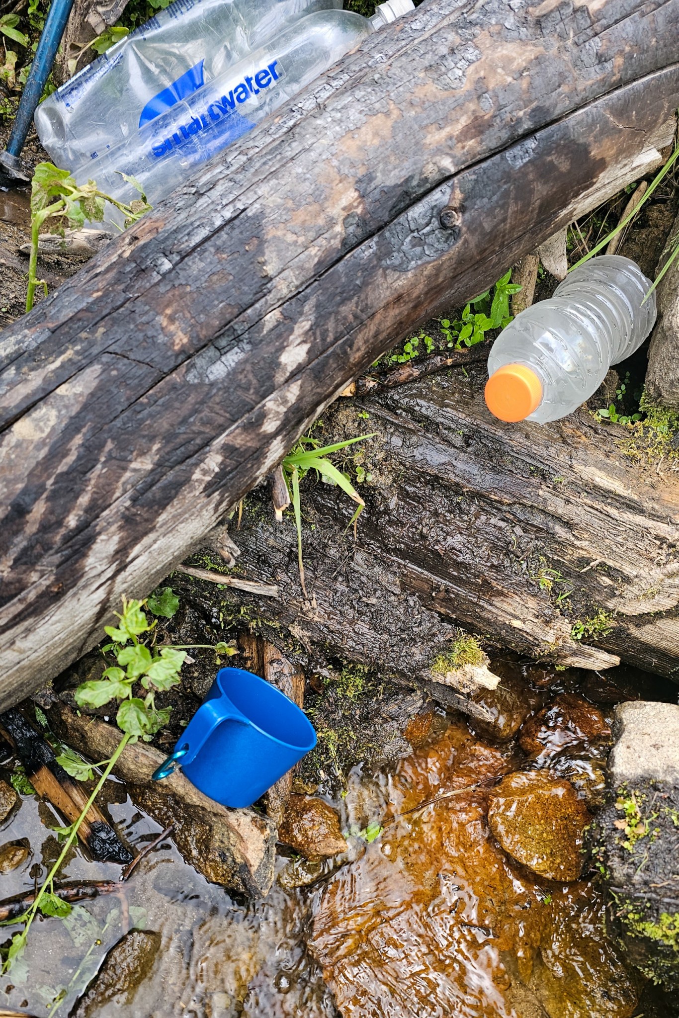 Er ist dort, damit ich schnell rankomme, um aus flachen Wasserstellen dieses in die Flaschen schöpfen zu können.