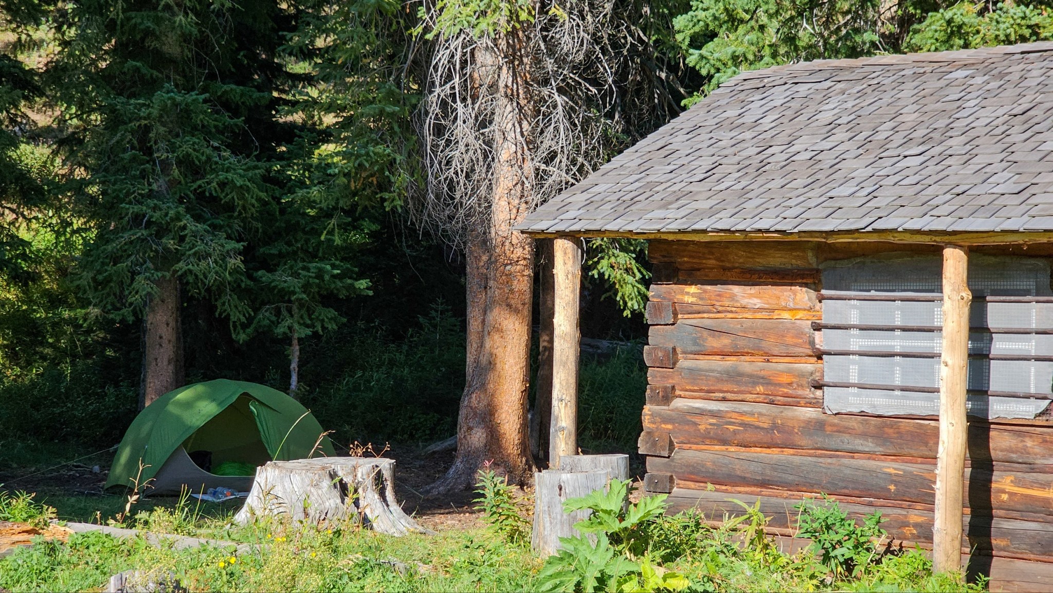 Der Zeltplatz in Grant Lake hat ein, zwei große Stellflächen für Thruhiker zum teilen. Da es keine mehr gibt hier in der Region, zelte ich sehr großzügig.